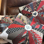 A former local customer Edith Sharpe recommended my work to her friend Nancy Sells.  After meeting Nancy and discussing the memory items she wants, Nancy sorted the clothes into groups for tie memory pillows, and later projects of quilts.  Her late husband Jim had a large number of ties.  For Christmas 2025, Nancy chose to have  tie memory pillows made for her three grandchildren.